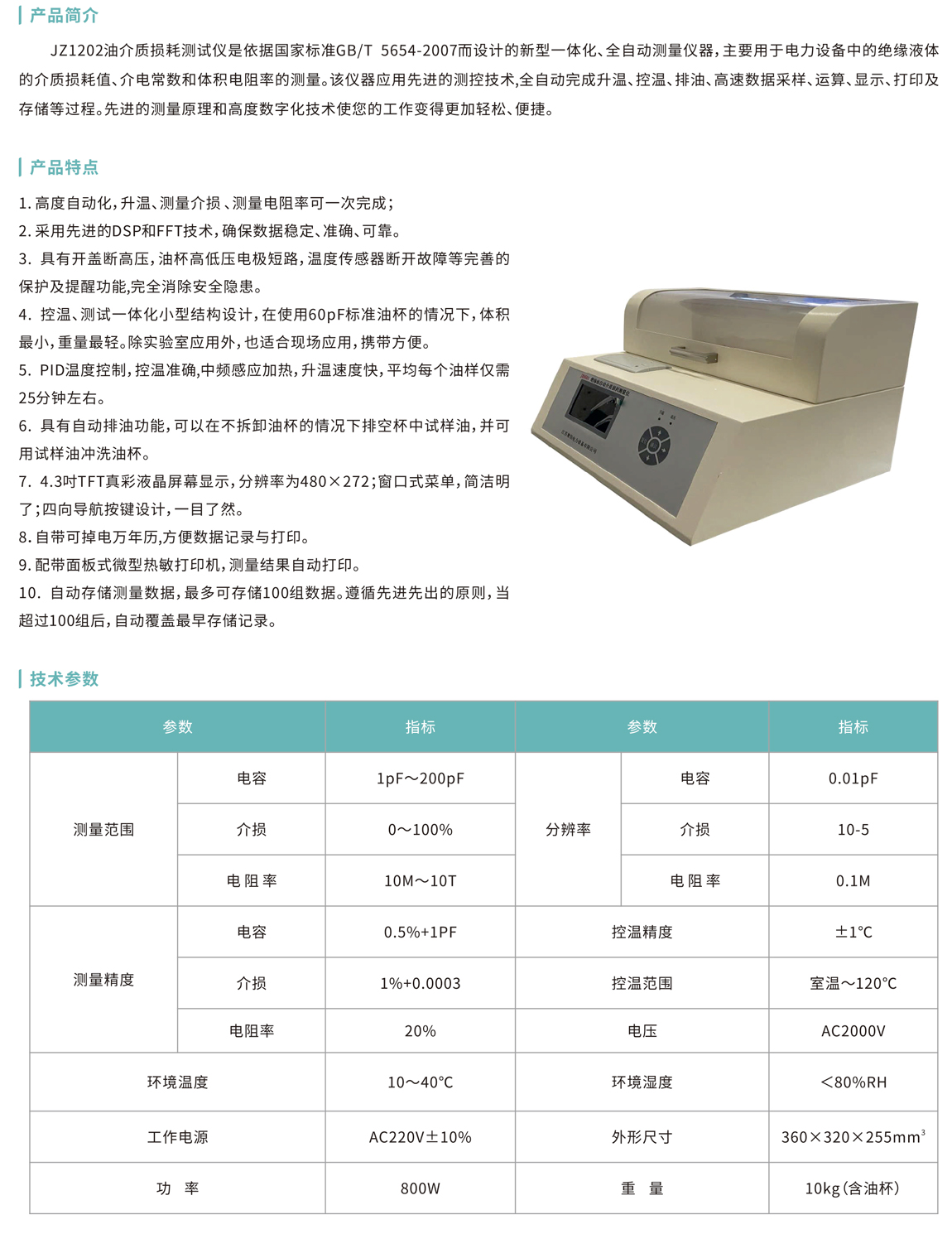 JZ1202油介質(zhì)損耗測(cè)試儀是依據(jù)國(guó)家標(biāo)準(zhǔn)GB/T5654-2007而設(shè)計(jì)的新型一體化、全自動(dòng)測(cè)量?jī)x器,主要用于電力設(shè)備中的絕緣液體