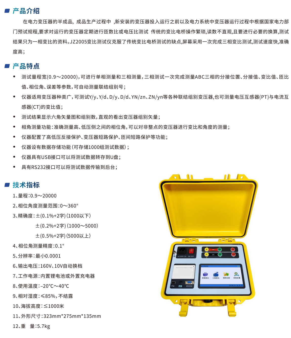 結(jié)果只為一相變比的資料。JZ2005變比測試儀克服了傳統(tǒng)變比電橋測試的缺點,屏幕采用一次完成三相變比測試,測試速度快,準(zhǔn)確