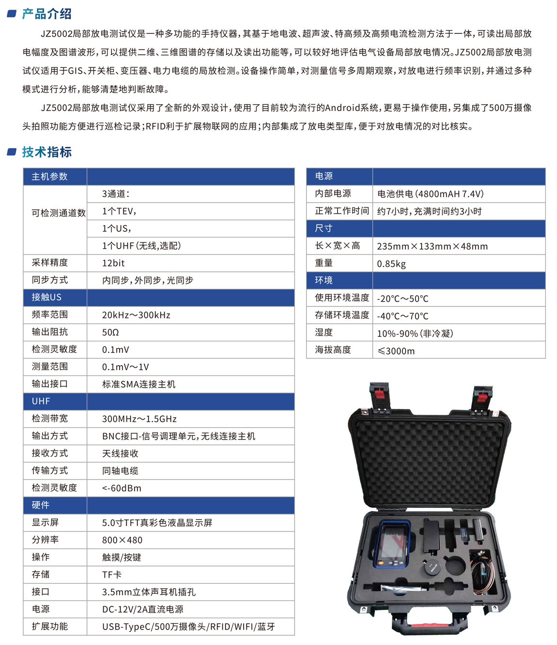 JZ5002局部放電測(cè)試儀是一種多功能的手持儀器,其基于地電波、超聲波、特高頻及高頻電流檢測(cè)方法于一體,可讀出局部放