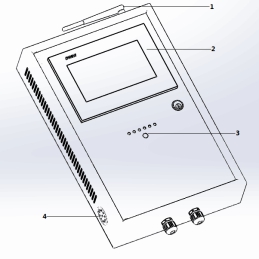 凈化系統(tǒng)組成部件:1、改進后433M無線通訊模塊;2、把手、3、電源插口;4、空氣泵;5、電源模塊;6、吸附劑氣室;7、萬向輪;8、排水口;9、氣泡石;10、316不銹鋼內膽;11、排氣口;12、注水口