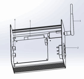 風機控制系統(tǒng)組成部件:1、改進后433M無線通訊模塊;2、交流電源插口;3、電源模塊;4、微型繼電器控制模塊